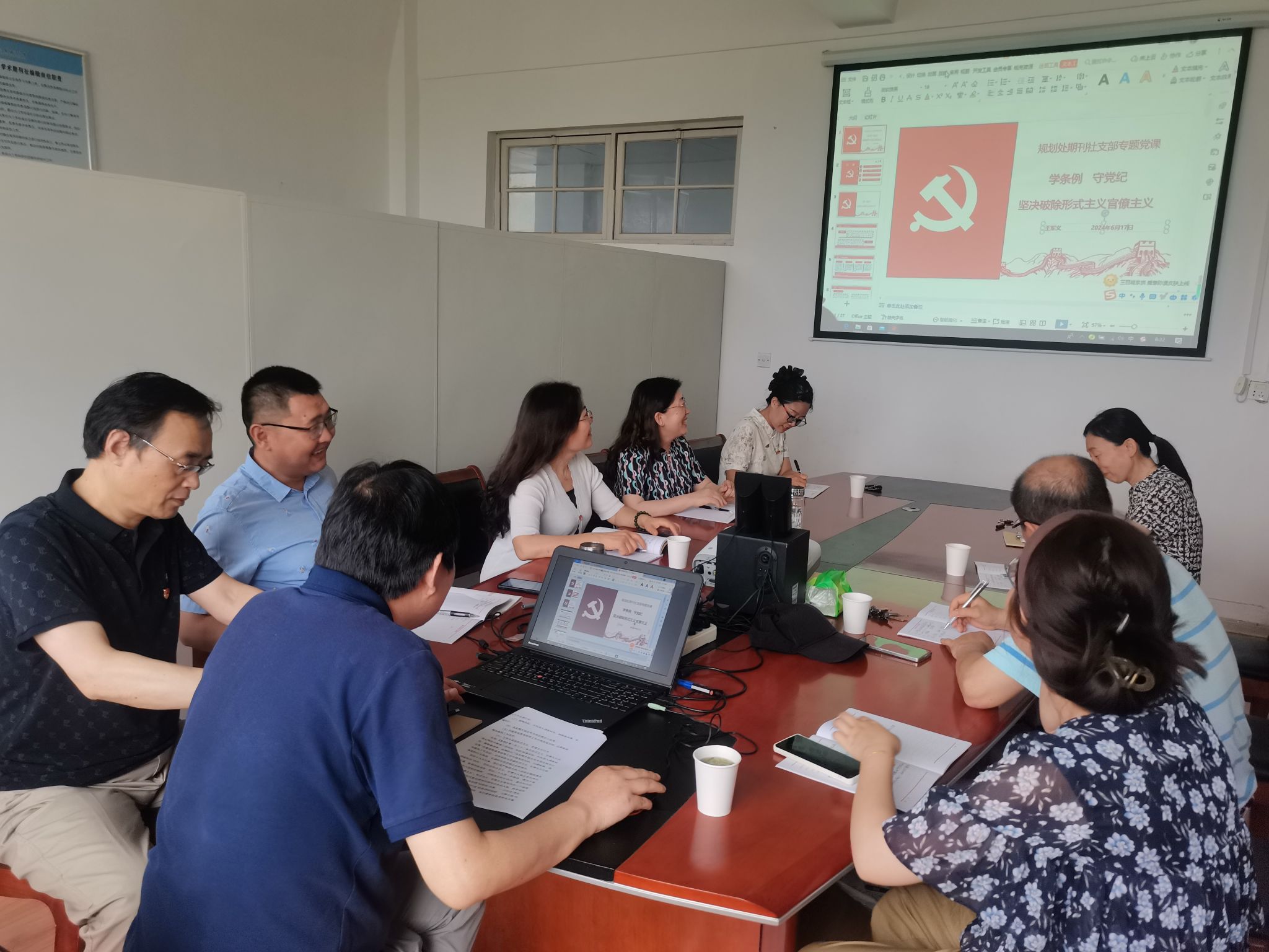 进一步巩固党纪学习教育成果,6月17日,发展规划处处长王军义以“学条例守党纪坚决破除形式主义官僚主义”为题,在文渊楼403室为机关规划处期刊社党支部全体党员上一堂生动党课。机关党委委员、财务处处长刘丽受邀参加了本次会议。