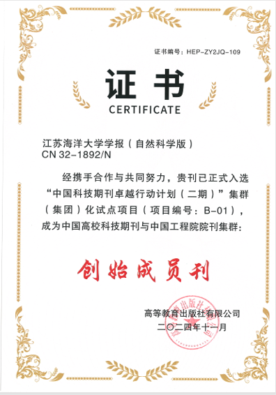 近期,中国科技期刊卓越行动计划二期入选项目公布,《江苏海洋大学学报(自然科学版)》加入的期刊集群——高等教育出版社有限公司入选“中国科技期刊卓越行动计划(二期)”集群(集团)化试点项目(项目编号:B-01)。本刊成为中国高校科技期刊与中国工程院院刊集群“创始成员刊”,并获颁证书。